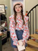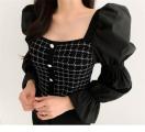 韓国ファッション ブラウス ニット 短いスタイル パフスリーブ フレンチスタイル