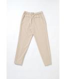 シンプルタックテーパードパンツですが、同色の切り替えをし、すっきり細見みえするシルエットとなっています。