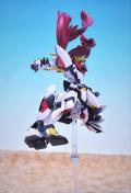 関節改造の関係で、腕、腰、下肢延長(下肢の延長はごくわずかですが)しています。延長用のパーツを取れば、腕と腰はもとに近い状態に戻すことが可能です。2枚目の写真は左から無改造・腕腰延長なし・腕腰も延長になります。3枚目の写真は左が改造後になります。箱・説など欠品はありません。マフラー未装着時に首周りにマフラーの赤が若干擦れて色写りしています。