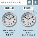 機能:電波受信機能(自動受信、手動受信)、電波受信オフ機能、夜間秒針停止機能(午後10時~午前6時)、連続秒針、置き掛け兼用