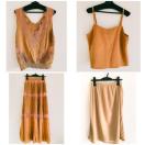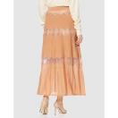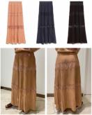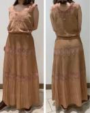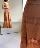 frayidfrayi.dレーストリムニットセットアップトップススカートブラウンオレンジシースルーフレイアイディープリーツスカートフラワーレースロングマキシワンピース