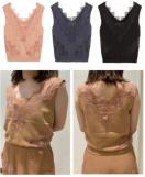 ニットと組み合わせた繊細なレースをワントーンでトリミングしたクラス感のあるデザインです。裾はリブで切り替えており、ウエストインもアウトも上品に着られます。