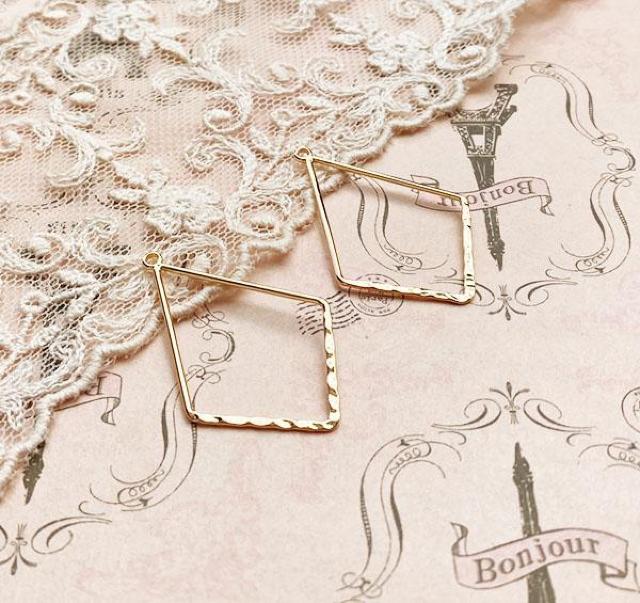 裾に波打つ模様の入った大き目ひし形チャームです。