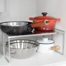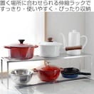 よく使うお鍋やフライパン調味料等のキッチン小物類等のごちゃついてしまいがちなキッチン周りをスッキリ片付けが出来るスライド伸縮式のラック