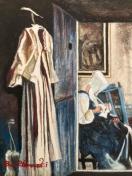 17世紀頃のオランダの上流階級(例えばフェルメールの家みたいな)の家で下働きをしている侍女をイメージモチーフにして、アンドリュー・ワイエスチックな感覚で描きました(個人的な感覚です)。構図が上手くいったと思います。尚、模写ではありません。