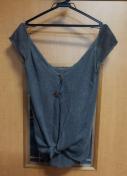 ボタンの方を後ろにしたり、スソを結んだり、ボタンを外したり、色んな着方ができます。