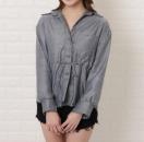 [春 秋 長袖 ゆったり シャツ ミドル丈 ブラウス グレー ウエスト スリム]無地、サイズ:M、着丈:71 / 肩幅:45 / 袖丈:50.5 / 身幅:50※稀に、1-3cmの誤差が生じる場合がございます。 (※カメラの機種の違いや光の反射等によって、色合いが少々違って見える場合がありますので予めご了承ください)※背景の小物等は撮影の為のイメージですので商品には含まれません※梱包サイズ規定により、二つ折りにして発送いたします。