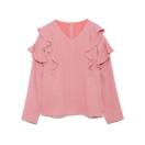 【さりげないフリルが映える、大人の甘口ブラウス】通勤にも似合うきれいめ素材を使用しているので、上品さも格別。シワになりにくく、デイリーに重宝します。さらりと軽く、肌触りがいいところもうれしいところ。袖にあしらったラッフルフリルが、さりげなく女らしさを引き寄せるブラウス。さりげないVネックが、全体の甘さを上手に引き締めています。シルエットはボックス型なので着回し力も高め。品良く映えるので、オンスタイルやデートにもぴったり。締切日時