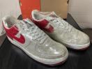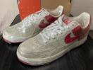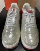 1982年に登場したエアフォース1は、その時その時代のカルチャーとも密接にリンクしバスケットボールシューズという枠を超え長い間ストリートの定番となっています。2005年のクリスマス前にリリースされたこちらはアッパーのマテリアルには天然皮革が使われていて、その上をキラキラと光るラメ素材を使うことでクリスマス的な要素を演出してるプレミアムモデルです。