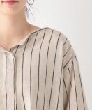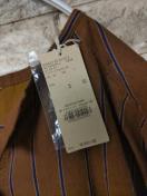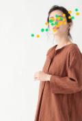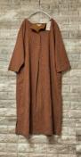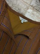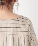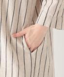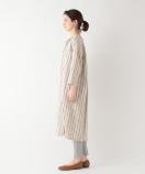 ブラウンのコットンリネン地にネイビーのストライプがステッチされ 甘くなり過ぎないナチュラルワンピースです♪