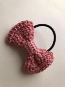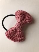 光沢のあるトルファンコットン2本取りでリボンを編んで、ヘアゴムを作りました。