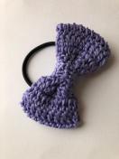 光沢のあるトルファンコットン糸でリボンを編んでヘアゴムを作りました。