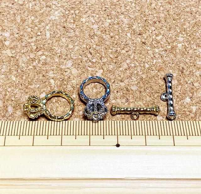 マンテルの輪の中にバーを通し、ブレスレットなどの留め具として使用します。