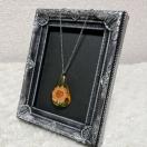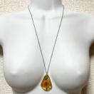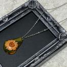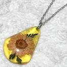 ティアドロップ形の樹脂の中に押花を閉じ込めた大きめトップがとっても可愛いロングネックレス