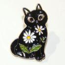 黒猫に白いフラワーが描かれていて、可愛いバッジです。