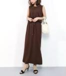 サラッとした肌触りのテレコカットソーを使用した ウエストブラウジングのロングワンピース