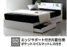 【高級感漂うモダン調】セミダブルベッド ポケットコイルマットレス付き 収納 引き出し付き セット