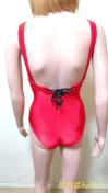 [商品情報] 眩しい光沢つるAレッドlive素材の背編上げsexyな水着です。 ブランド:SUNSHINE サイズ:9M 素材:ナイロン パット:あり タグ記名:なし 他:着用少なく綺麗なお品です(used)。ホームクリーニング済み。