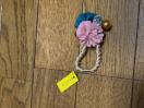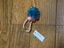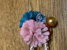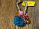 ゴールドのゴムにピンクや赤系のビーズ、青系のふんわりしたお花とピンクのお花がついているデザインでとても可愛いです☆