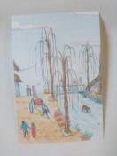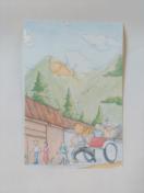 人力車が登場するイラストの絵葉書5枚です。