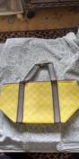 黄色いチェック柄の保冷バッグです、黄色くてお洒落なチェック柄なのでお洒落好きな方チェック柄が好きな方におすすめです、私が購入して使いたいと言う人にお譲りしますのでご検討ください、持ち手を入れての縦30センチ、横20センチ、幅15センチ、綺麗な花柄のポーチをおまけに付けます、それから小さい子どもさんがいる人が購入する場合は持ち手で遊んだり保冷バッグの留め具やポーチの留め具で遊んだり飲み込まないように気を付けてください。締切日時
