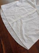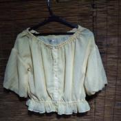 新品ですが、自宅保管期間が2年位あり、出品にあたり、洗濯しました。シワあります。シワがまた素敵な感じにも見えます。右袖ボタン上に薄い茶色シミが、なぜだかありました。部分洗いお願いしますね。