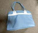 使用に大きな問題は無いと思いますが、ハンドル根元に生地、裁断のホツレあり。手縫いで修理出来ると思います。
