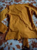 帯の様な太さの物が縫い付けてあり、お腹の所で、結ぶようなデザインとなってます。