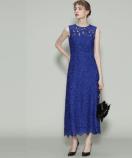 GRACECONTINENTALGRACECLASSフラワーレースミッドドレスシースルーロングワンピースオケージョン結婚式紺色ネイビーグレースクラス