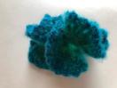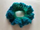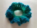 モヘア調のふんわりした毛糸でシュシュを編みました。
