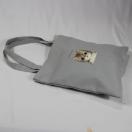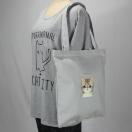 ★猫柄トートバッグ 端正なネコ顔 かわいいイラスト ファスナー シンプル 灰色 薄地 軽量 ママバッグ 普段使い レディース キッズ BA51