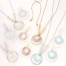 サイズの異なるシェルパーツを何枚か重ねたり、2つ穴のシェルをジョイントにして連ねたピアスは、涼しげな音も楽しめるオススメレシピです!