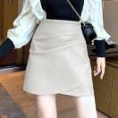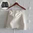 ドレープデザインのゆるやかさと重ねたようなラップデザインが大人の魅力を引き出してくれるミニスカートです