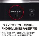 フォノイコライザーを内蔵し、PHONO/LINE出力を選択可能。