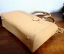 素材表記なしの為不明。厚手の皮のような手触りの化繊だと思われます。