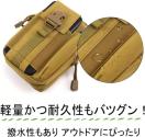 【 軽量かつ耐久性も抜群 】素材は高密度強化ナイロンを使用。 また撥水性があり汚れも目立ちにくい為、アウトドアシーンに最適なポーチです。 サバゲー、登山、旅行、野外活動、釣り、ハイキング、サイクリング、DIYなど普段使いなど様々なシーンに合わせて使い方自在!