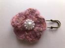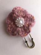 ふんわりふわふわモヘア入り毛糸2本取りでお花を編んで、ストールピンを作りました。