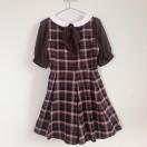 ブラウスにチェック柄ワンピースを重ねたような、異素材ドッキングのアイテム。ホワイトカラーでメリハリ良く仕上げた襟は、スカラップでシルエットも可愛くこだわり、バックジップにはリボンを付けて、後ろ姿もガーリーに抜かりナシ。タック部分にデザインしたクロスリボンのアクセントも光るアイテム。