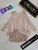 極美品ERUKEI高級ドレスワンピース肌色腕透かし体型カバーバラの花セクシー上品