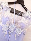 02 アップリケの上で 贅沢な煌めきを放つ、ラメ糸と スワロフスキー・クリスタル。