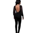 新品未使用 ジャンプスーツ ブラックセクシー着痩せ 背中空き ベア
