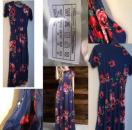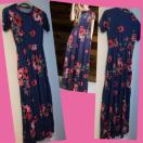 品薄★特価★新品未使用ロングワンピースマキシ半袖ポケット人気着痩フェミニンブルーとネイビー 体型カバー上品