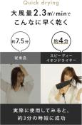 商品説明【大風量2.3㎥/min】ドライ時間30%短縮を実現】面倒なドライ時間を短縮できる、大風量タイプ。
