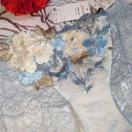 民族衣装をヒントにした1970年代のフォークロアファッション。その独特なカラーリングと懐かしい雰囲気を、サルートらしく昇華しました。多色使いのアップリケ、レースに刺繍を重ねた豪華さ。劇的に美しい店舗限定商品グループです。