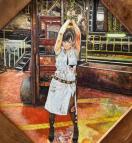 2020年に額縁屋さんに特注で作って貰った八角形の額縁に、どうにも納める構図が見当たらず描けずにいたのですが、たまたま秋元康氏制作のシリーズドラマ、マジすか学園の1〜5まで観たのがきっかけで、その中でも5のワンシーンが、「あ、あの額縁にいけそう」と思い、工場なので直線が多いのですが、早く描きたかったので、フリーハンドで一気に描き上げました。