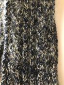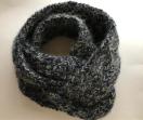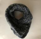 ウール100%のネイビーの毛糸と、毛足のあるコットン71%アルパカ29%ブレンドのグレーネイビーミックスの毛糸2本取りでスヌードを編みました。