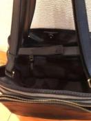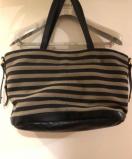 ★正面のレザー部分ファスナー付いていてお財布や携帯も入れられます。 レザーとジュートのような生地のストライプがおしゃれ