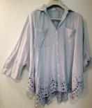 極美品チュニックブラウスフェミニンライトブルーレース体型カバー大活躍オシャレポケット襟付き水着の上もバッチリfree's Shop