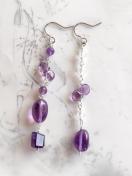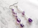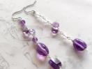 鮮やかな紫色の石たちをアシンメトリーに配置してピアスにしました。