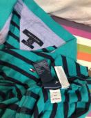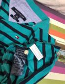 極美品TOMMY HILFIGERグリーン系?シャツロゴ清楚人気素敵カットソー Tシャツ大活躍人気 ボーダー柄 ポロシャツメンズ